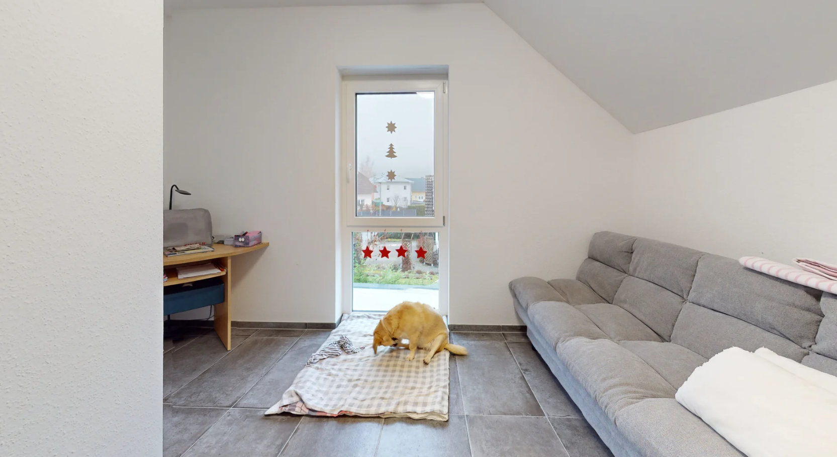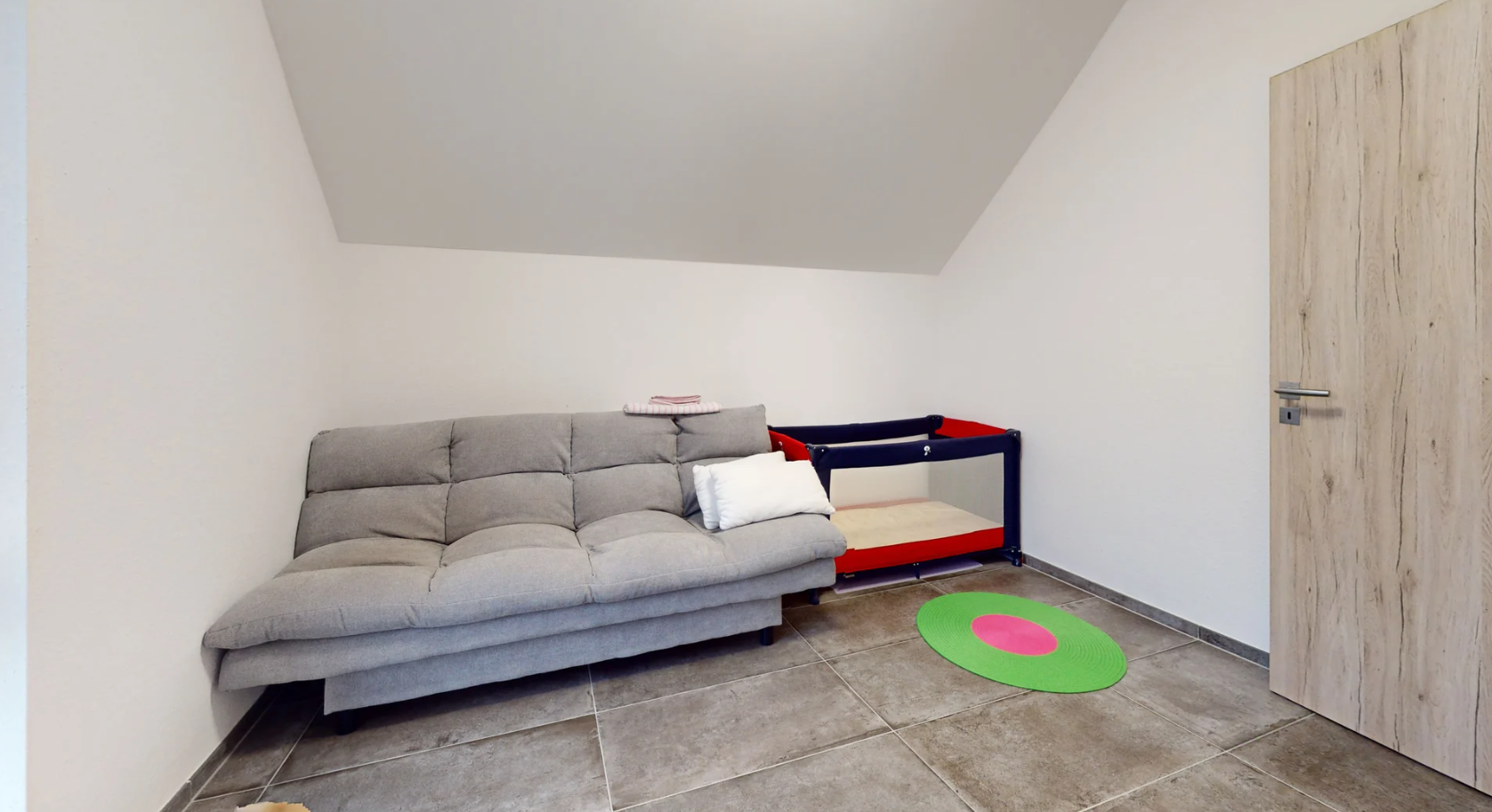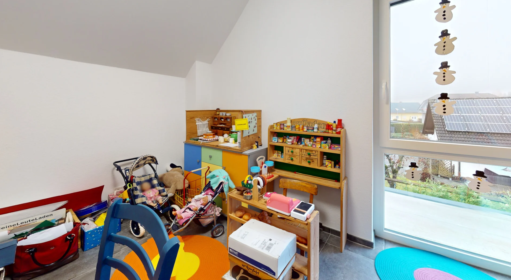 Im Obergeschoss entfaltet das Haus seine ruhige, private Seite. Die freundlichen, hellen Schlafzimmer wirken sofort einladend: klare Linien, warme Lichtstimmung, ein harmonisches Raumgefühl. Jeder Raum hat seine eigene Wirkung – ob als Elternschlafzimmer, Kinderzimmer oder inspirierendes Homeoffice.