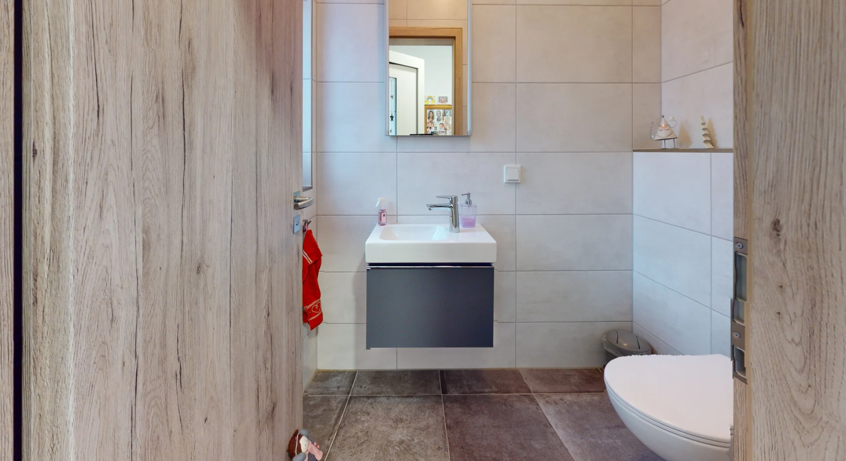 - ein geräumiges Gäste-WC, das Komfort und Alltagstauglichkeit bietet